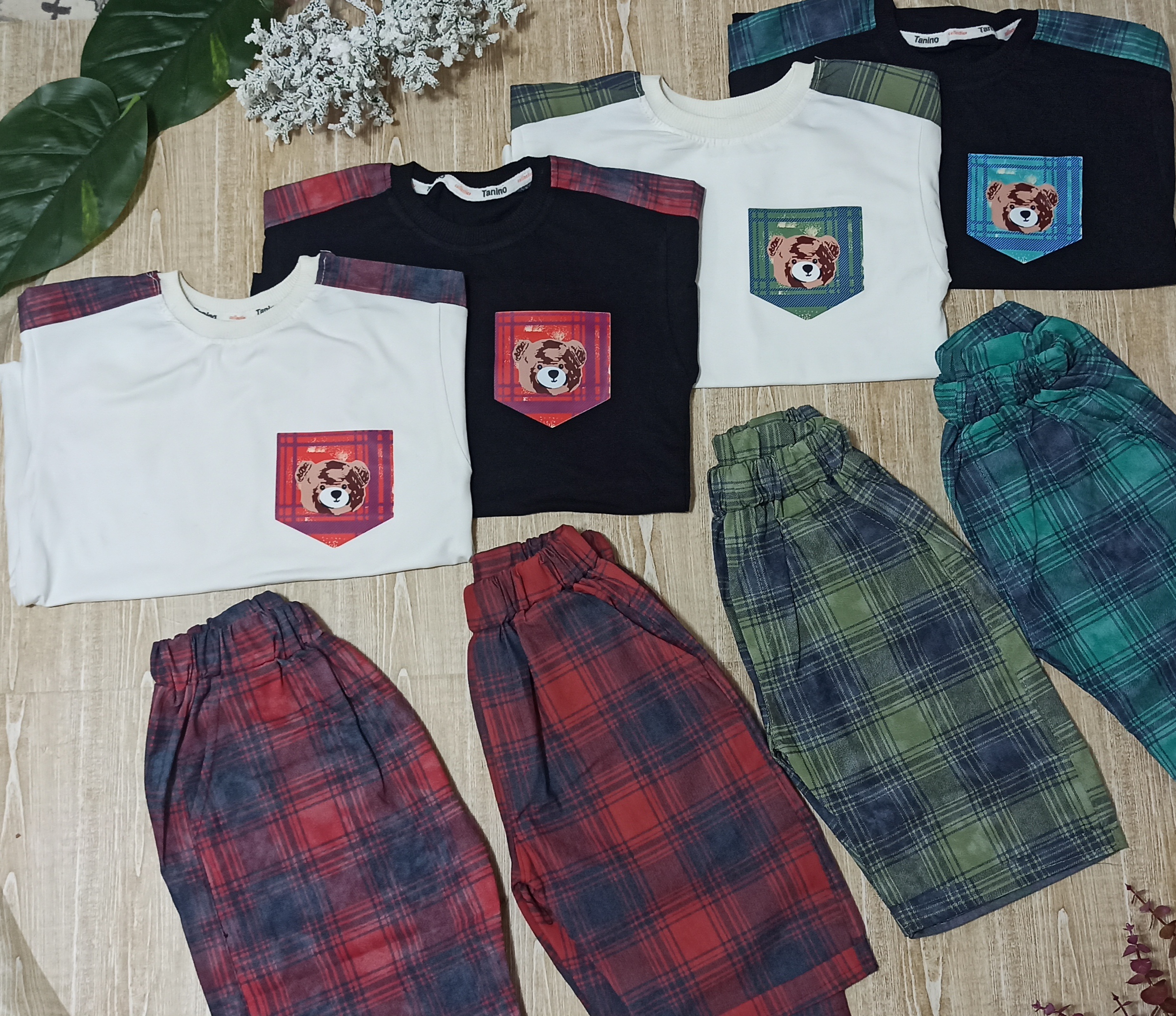 تیشرت و شلوارک خرسی شطرنجی بچگانه