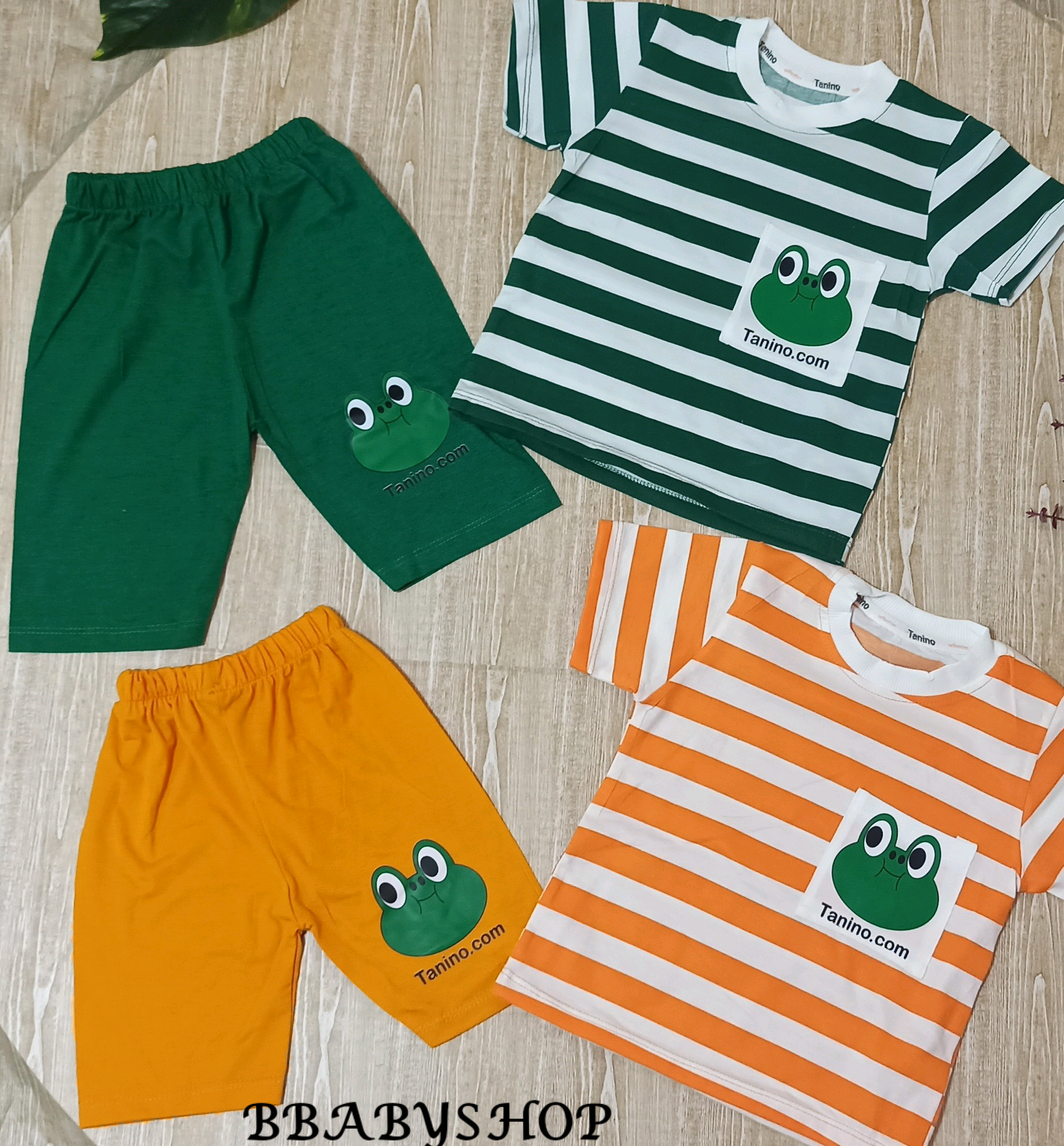 تیشرت و شلوارک بچگانه راه راه طرح قورباغه